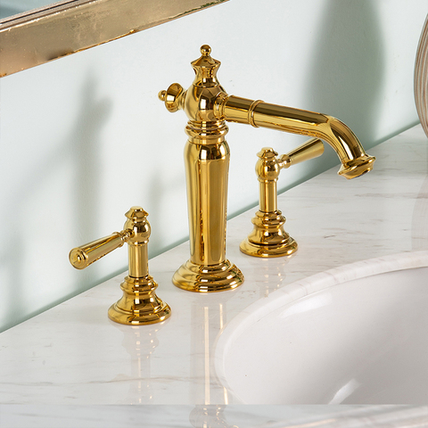 Hot Selling Traditionele Messing 3-Holes Dual Handvat Kraan Victoriaanse Stijl 8 \ "Wijdverspreide Mount Voor Badkamer Wastafel